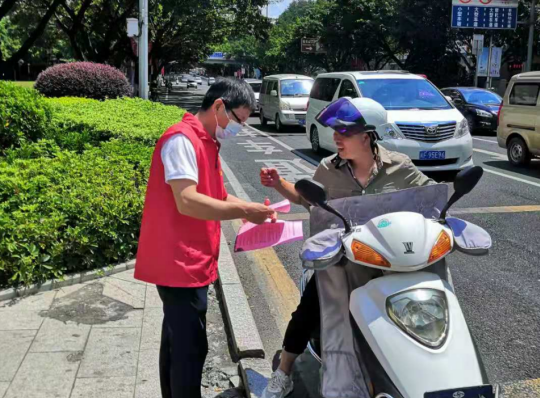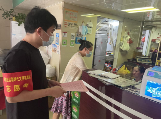 八月末,天氣炎熱,市政集團(tuán)的志愿者們身著紅馬甲,不畏臟、不怕累,各司其職,分時(shí)段分批次在蓮新社區(qū)范圍內(nèi)開展創(chuàng)城活動(dòng),其中清潔崗的志愿者們帶著夾子、掃帚、垃圾袋等清掃工具,對(duì)街道路面的紙屑、塑料袋、煙頭等生活垃圾進(jìn)行清掃,將亂停亂放的自行車整齊的排列在停車位上,使得街道整潔一新。宣傳崗的志愿者們走進(jìn)商鋪,發(fā)放文明宣傳標(biāo)語,動(dòng)員商鋪店主一起,注意門前三包,在平時(shí)營業(yè)工作中,遇到不文明行為時(shí),進(jìn)行及時(shí)規(guī)勸,讓市民自覺遵守,規(guī)范自身行為,積極踐行“共創(chuàng)共享”的創(chuàng)城理念,共同為創(chuàng)建文明城市出一份力。交通崗的志愿者們通過積極引導(dǎo)道路交通,向過往行人科普創(chuàng)城溫馨小知識(shí),加強(qiáng)城市文明建設(shè)。